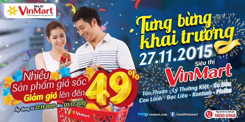 Ngày 27/11/2015, hệ thống VinMart đồng loạt khai trương 7 siêu thị mới tại miền Nam. Nhân dịp khai trương, chương trình khuyến mãi “Mùa đông ấm áp – Trao tặng yêu thương” với nhiều ưu đãi đặc biệt cho hàng trăm sản phẩm sẽ được triển khai tại hệ thống VinMart toàn quốc từ ngày 27/11/2015 đến ngày 10/12/2015.