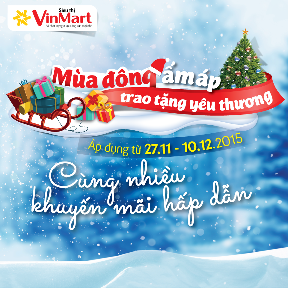Đồng thời, hệ thống VinMart cũng tung ra một chương trình khuyến mại lớn mang tên “Mùa đông ấm áp – Trao tặng yêu thương” áp dụng trên toàn hệ thống VinMart từ ngày 27/11/2015 đến hết 10/12/2015 với mức giảm giá lên đến 49% cho hàng ngàn nhu yếu phẩm bao gồm thực phẩm tươi sống, thời trang, hàng gia dụng, hóa mỹ phẩm… Không chỉ ưu đãi giảm giá, rất nhiều mặt hàng tại VinMart còn được tặng kèm sản phẩm hấp dẫn như: Mua dầu gội đầu Sunsilk được tặng kem đánh răng 200g, mua nước xả vải Downy được tặng bột giặt Ariel, mua nước xả Comfort được tặng nước rửa chén Sunlight… và hàng trăm sản phẩm tặng kèm quà tặng giá trị khác.