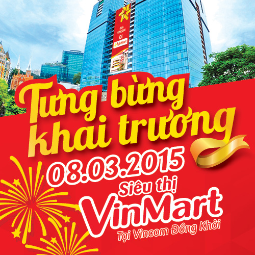 Ngày 08/3/2015, siêu thị VinMart thứ 2 tại TP.HCM sẽ được khai trương tại TTTM Vincom Đồng Khởi, hứa hẹn là điểm mua sắm hiện đại, sẵn sàng phục vụ người tiêu dùng trên địa bàn. Tiếp ngay sau đó, ngày 10/3/2015 đồng loạt 10 cửa hàng tiện ích VinMart+ cũng sẽ ra mắt tại TP.HCM, phục vụ mọi nhu cầu thiết yếu của khách hàng.