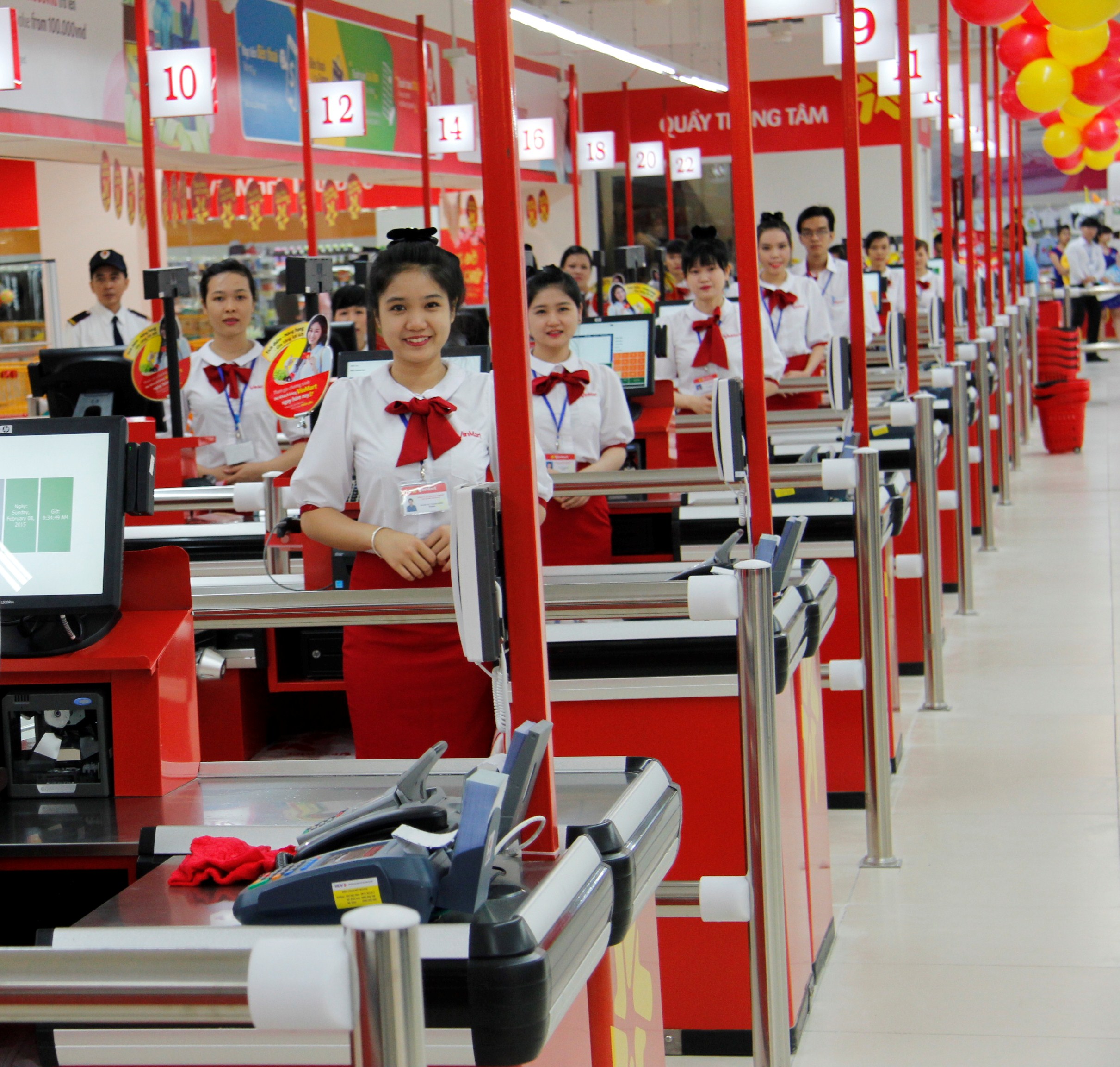 Đội ngũ nhân viên ân cần và chuyên nghiệp của VinMart đã sẵn sàng phục vụ khách hàng.